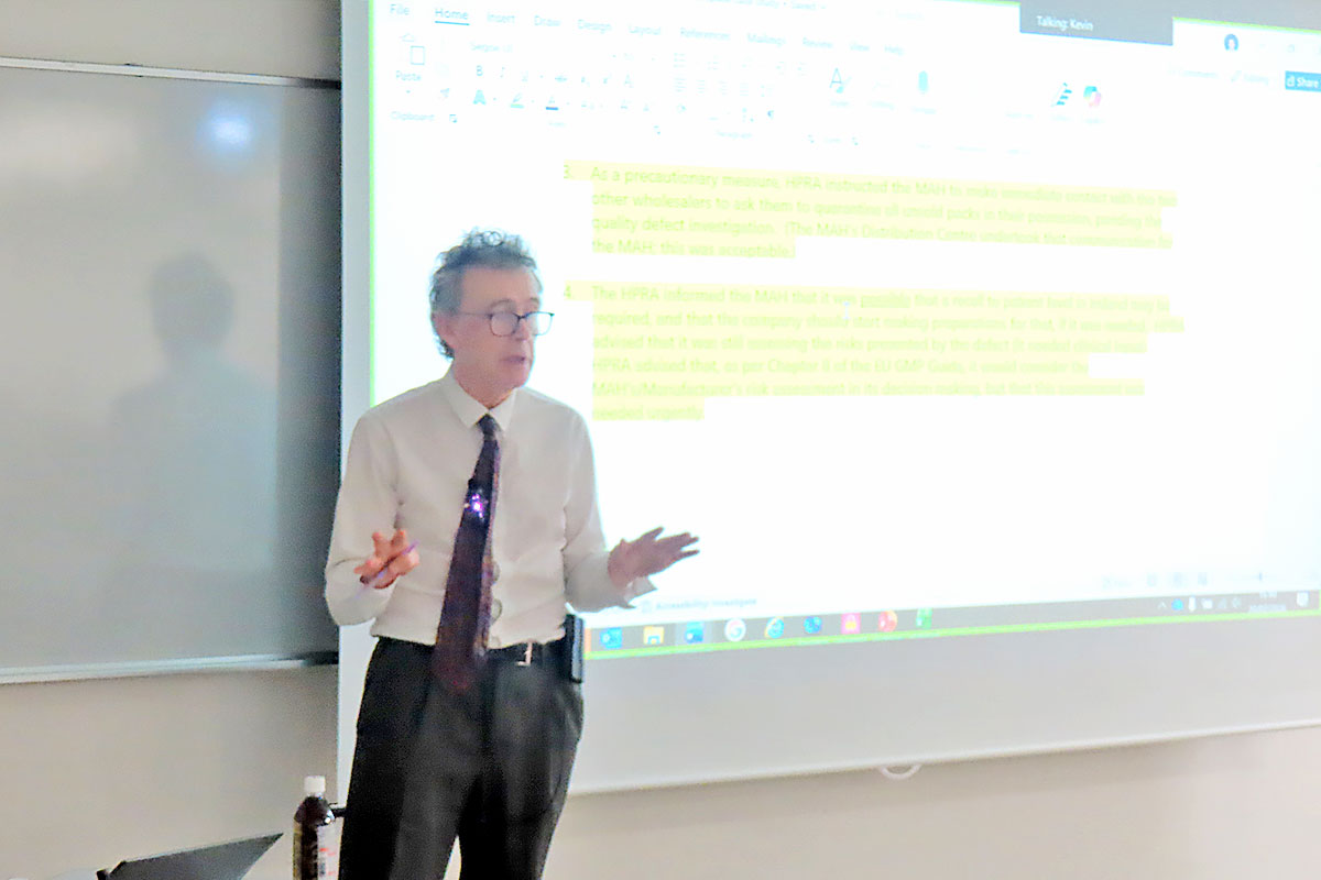 Kevin先生の講義「品質リスクマネジメント(ガイドライン改訂)の概要」