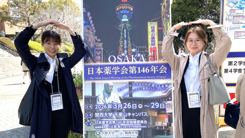 生命創薬科学科4年西面咲希さん「生理学的薬物吸収モデリングによる高脂肪食と低脂肪食における食後の薬物吸収予測」、生命創薬科学科4年佐々木香奈さん「Physiologically Based Biopharmaceutics Modelingを用いたClinically Relevant Dissolution Specificationの設定:溶出試験で堆積する製剤」が口頭発表しました。2人とも良い発表でした。(2026/3/27)