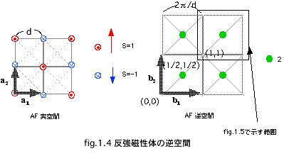 格子並進ベクトルをfig.1.3左図のように取ると強磁性体の逆格子ベクトルは