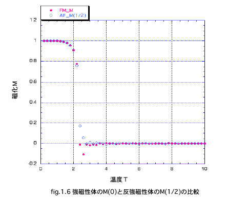 シミュレーションによる結果は以下のようになる。fig.1.5 反強磁性体の