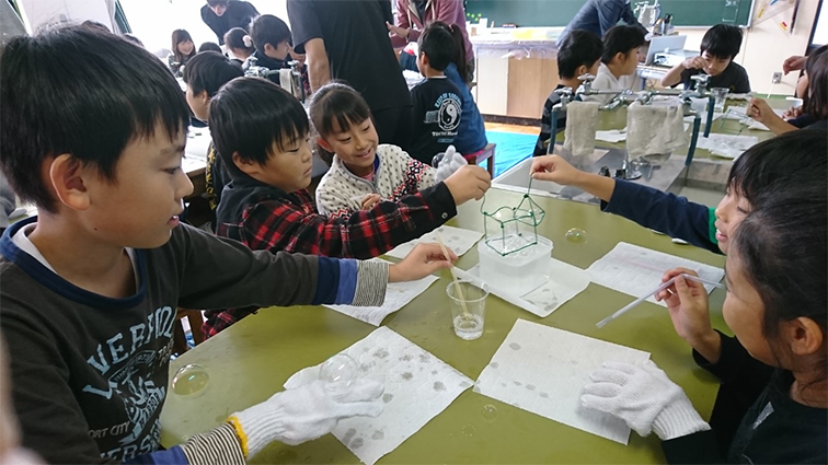 シャボン玉教室 in二川小学校