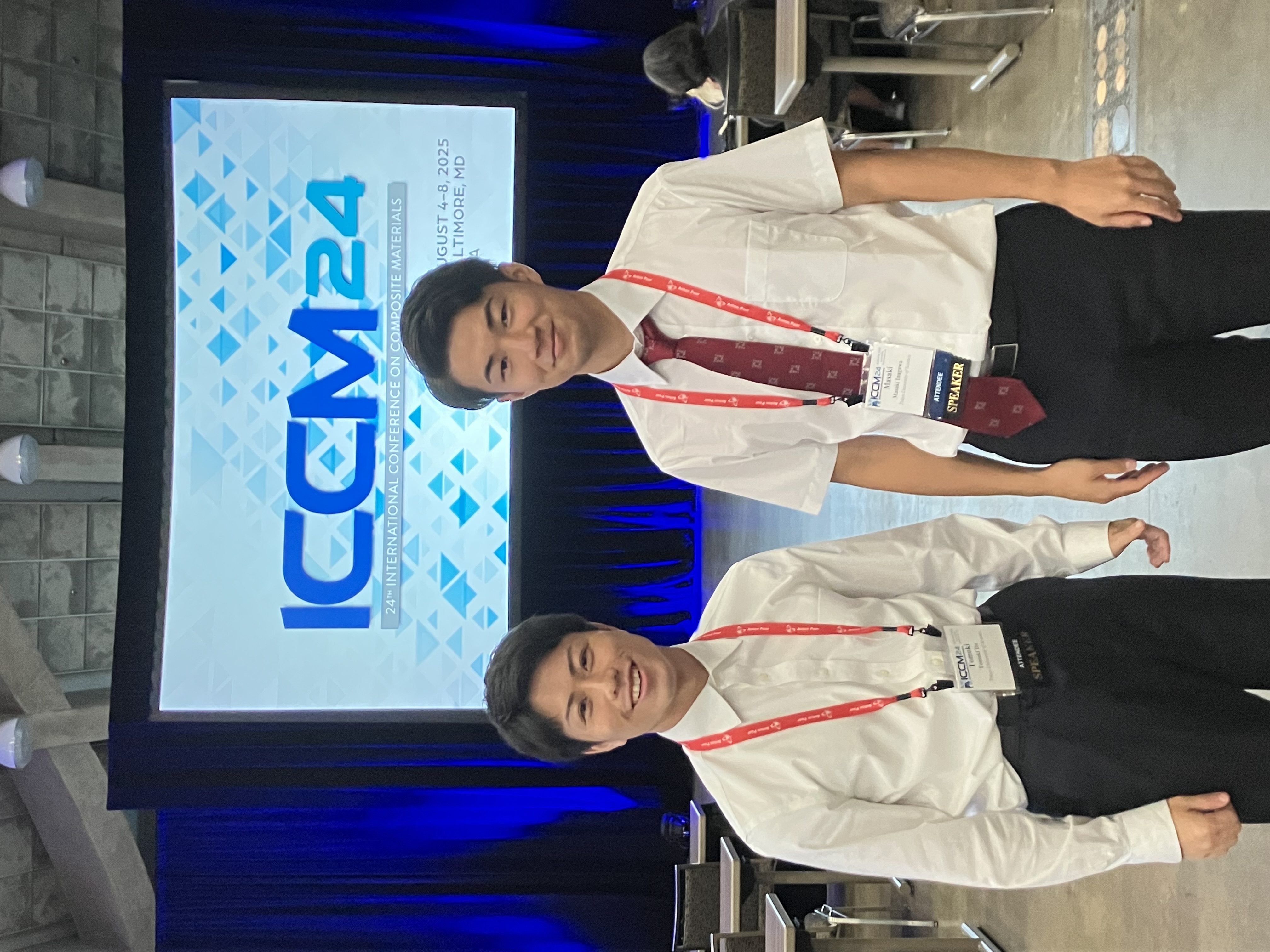 Ito (M2) and Inagawa (M2) made oral presentations at 24th International Conference on Composite Materials (ICCM24) (4th-8th Aug. 2025; Baltimore, MD, USA). Ito was financially supported by the Suzuki Foundation, and Inagawa was financially supported by the Research Foundation for the Electrotechnology of Chubu.